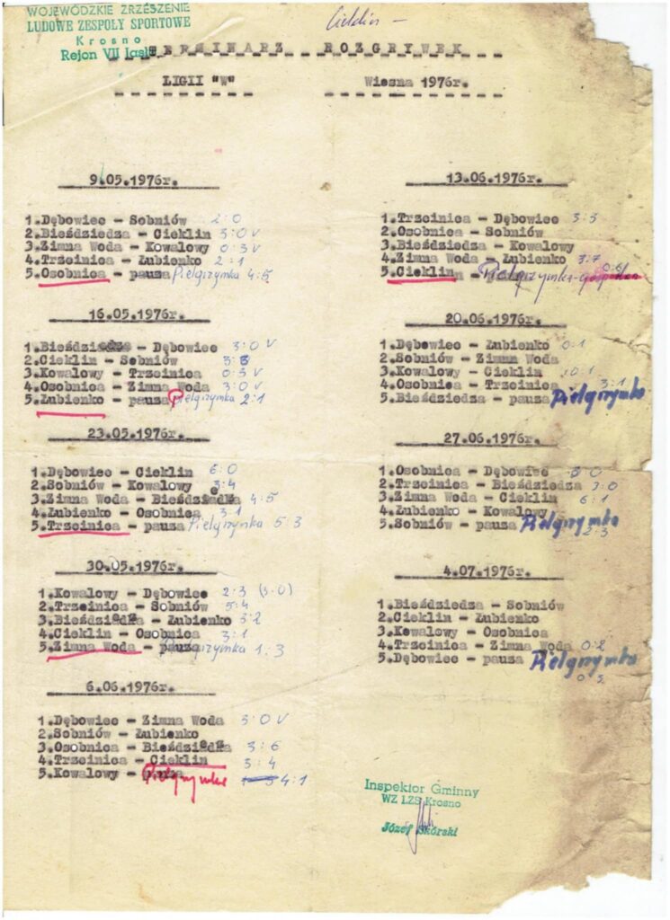 Terminarz ligi wiejskiej – wiosna 1976 roku