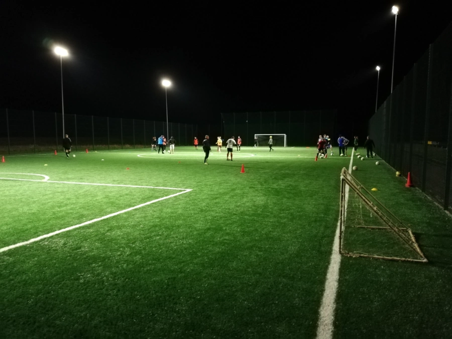 Zaplecze: 2 szatnie, łazienka, 3 natryski, szatnia sędziów